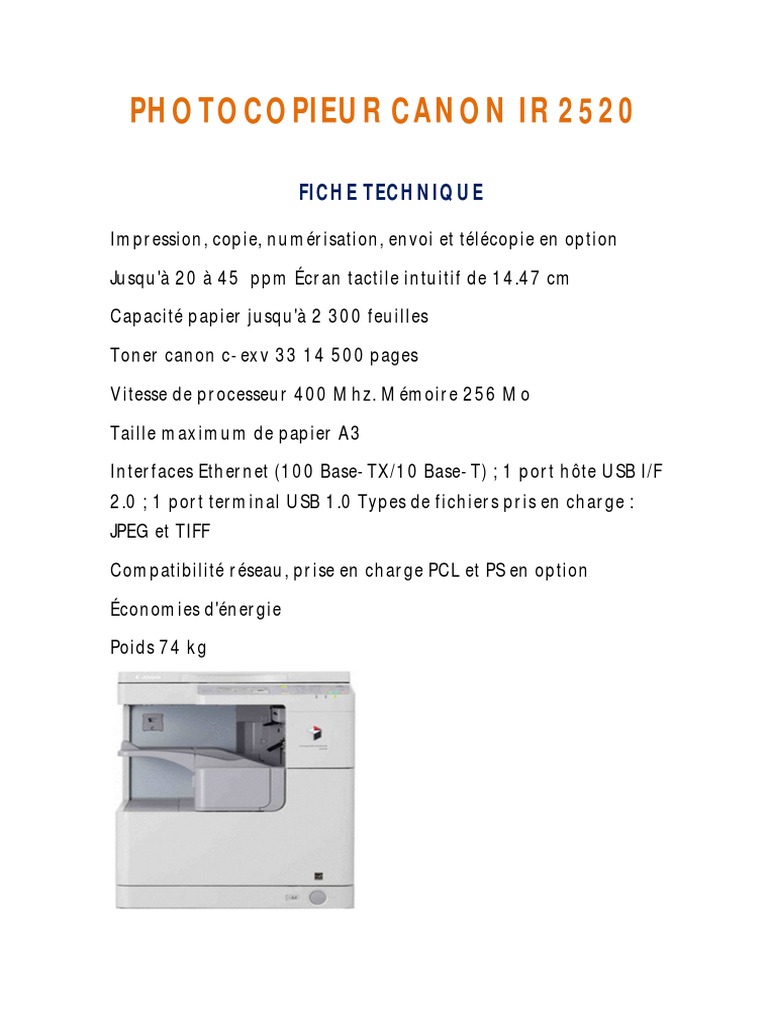Regroupant à elle seule les fonctions de. .photocopieur canon ir 2520 prix 108000.00 et a partir de 5 pcs prix 104000.00 n'hesitez pas a nous contacter,on se fera un plaisir de vous aider fonctions générales multifonctions canon imagerunner. We have 16 canon imagerunner 2520 manuals available for free pdf download: Cliquez sur le bouton orange pour lancer le téléchargement du mode d'emploi canon ir 2520. Canon imagerunner 2520, özellikleri ve yapabilecekleri hakkında daha fazla bilgi edinin.